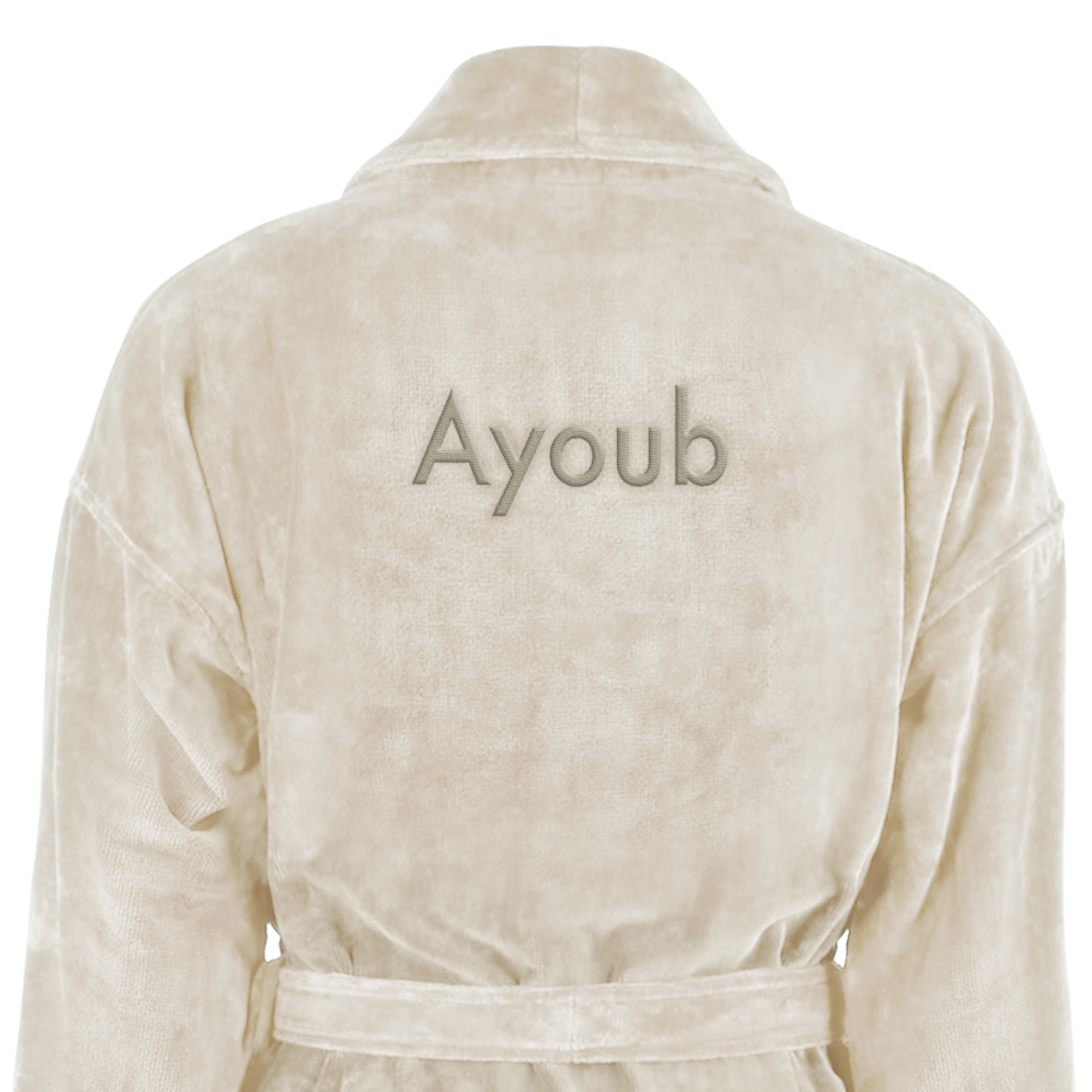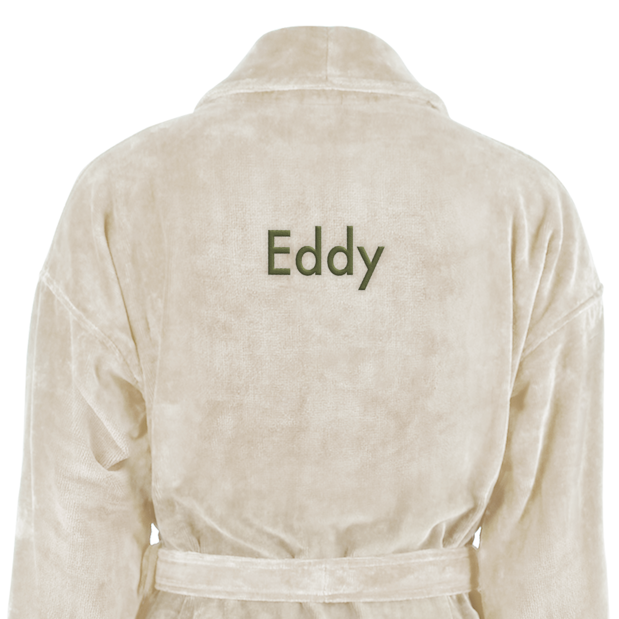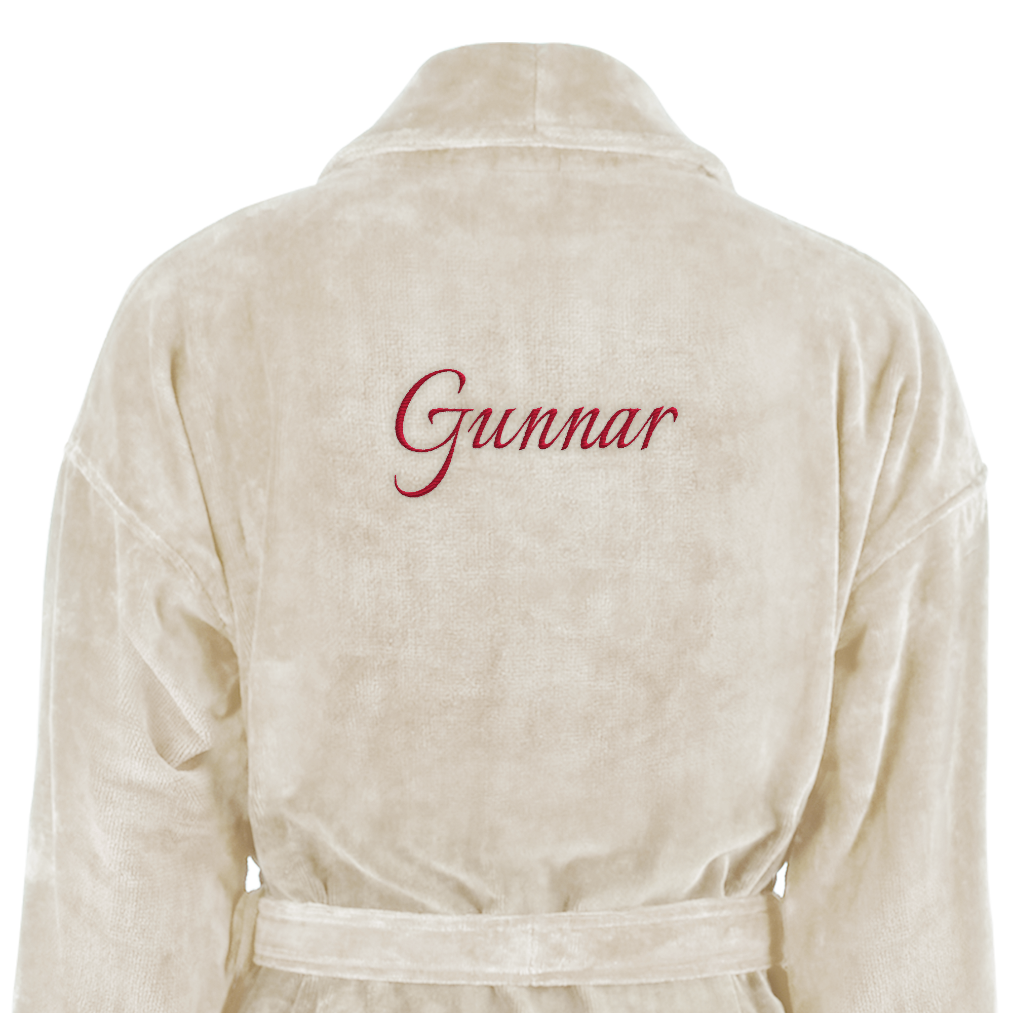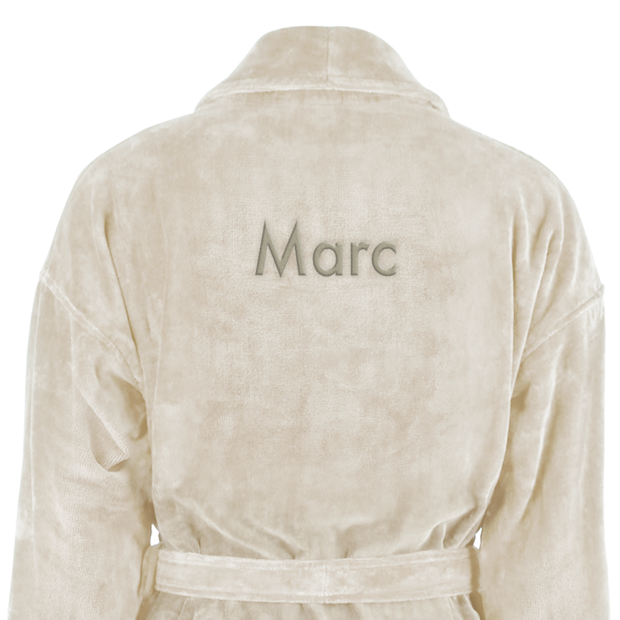 ¡Un albornoz original con su propio texto o nombre bordado! Una bata de baño clásica para hombre hecha de 100% algodón .