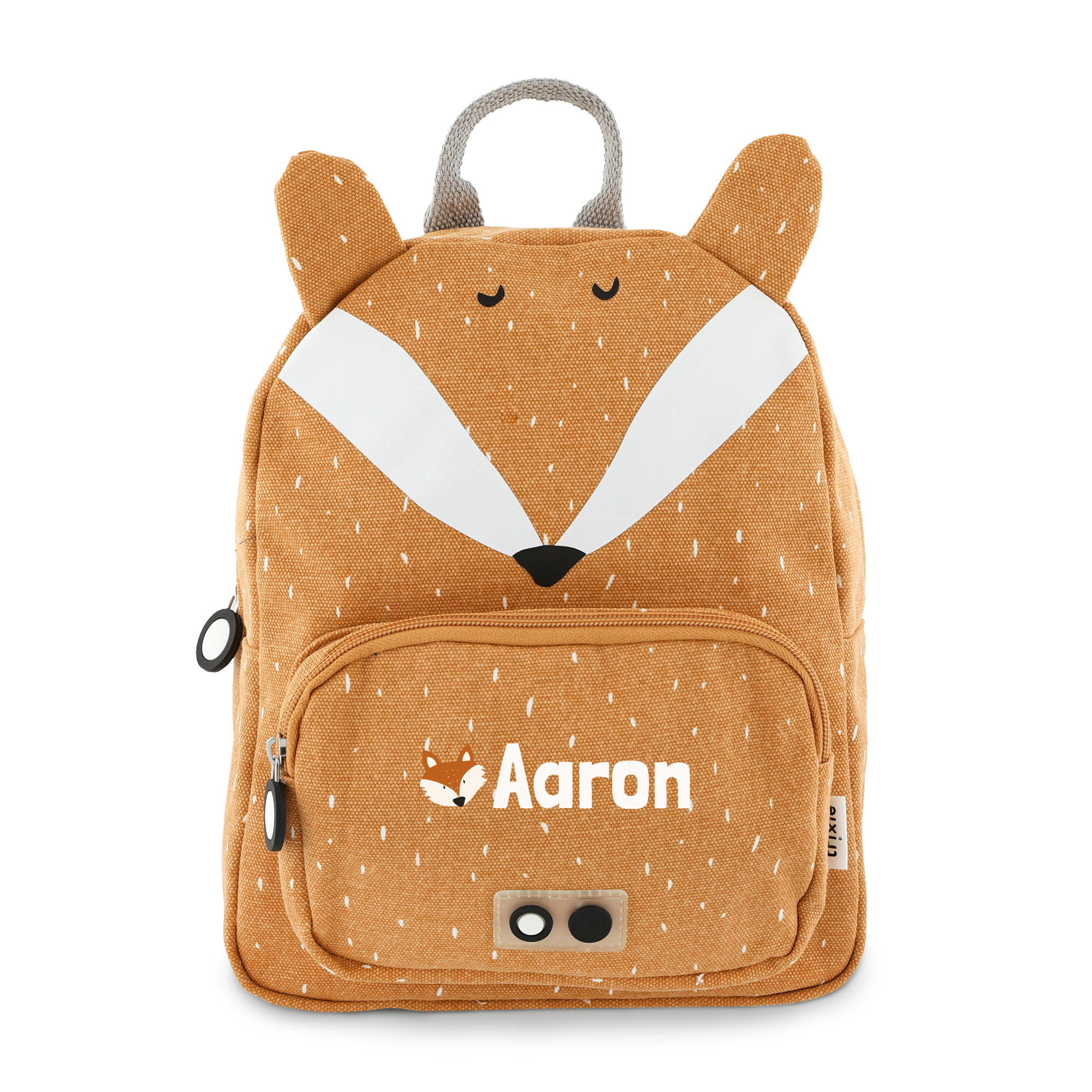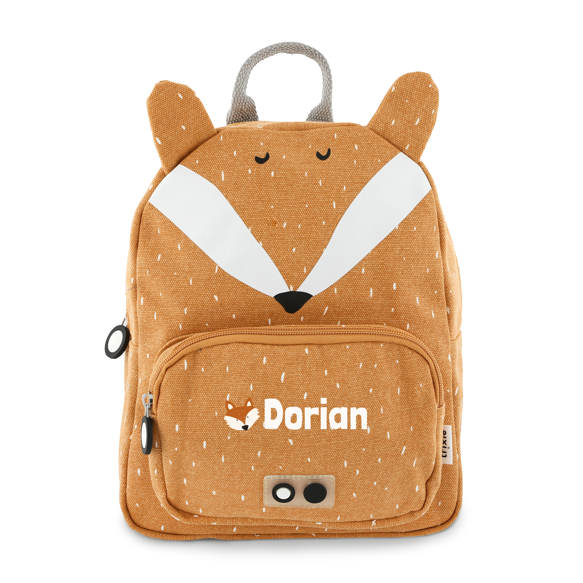 Mochila personalizada con el nombre de tu hijo, diseño adorable de zorro Trixie, perfecta para la guardería o los primeros viajes.