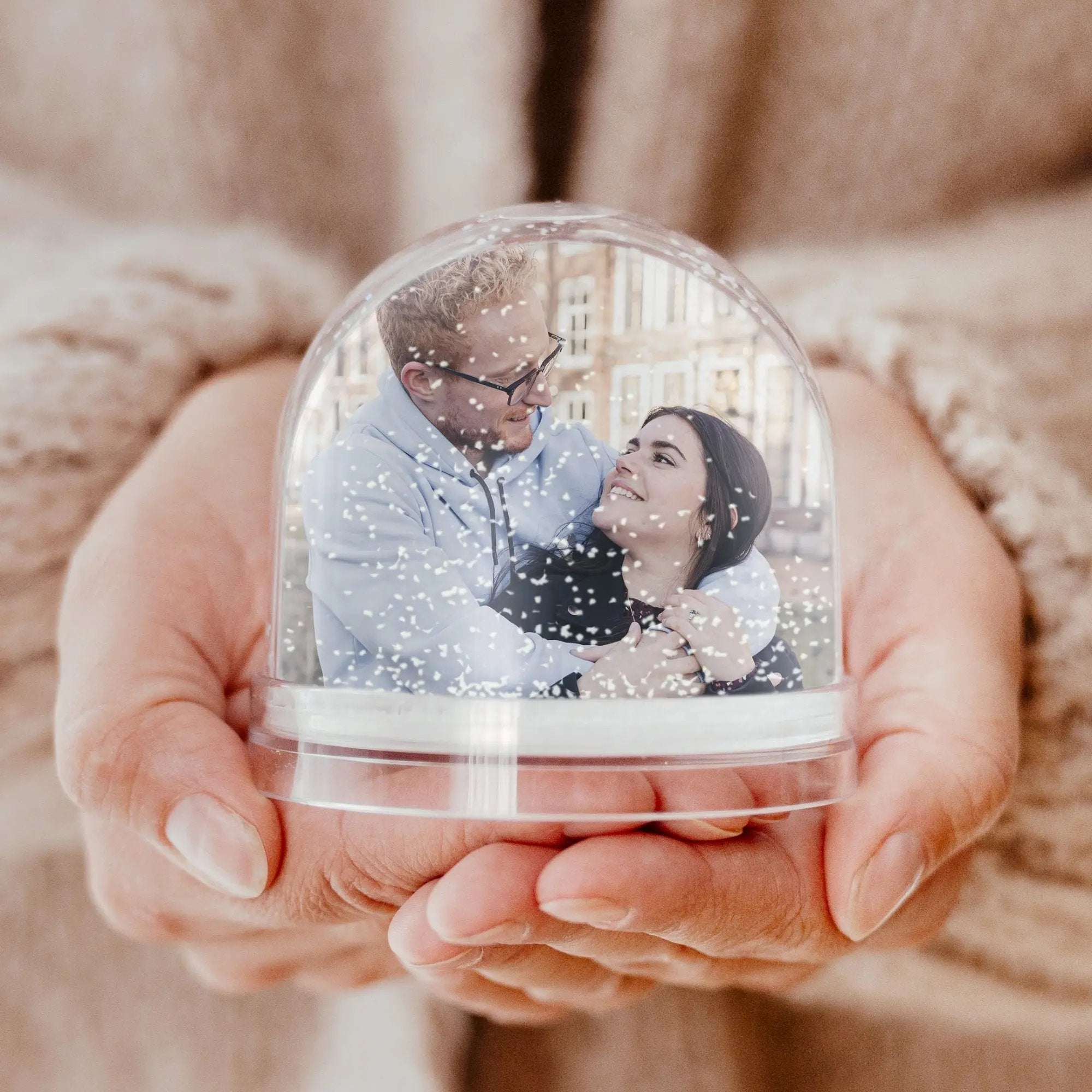 Más información sobre la bola de nieve:Material: plexiglás de alta calidadTamaño foto: 7 x 6 cmTamaño globo: 8.5 x 9 cmEfecto: copos de nieve