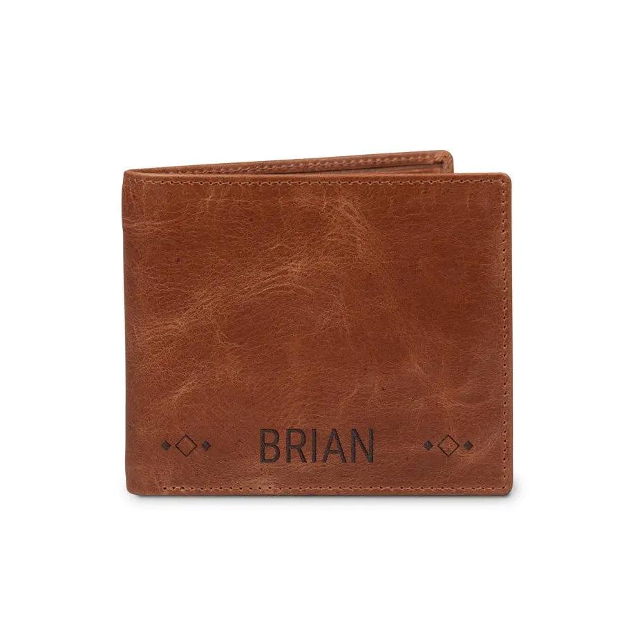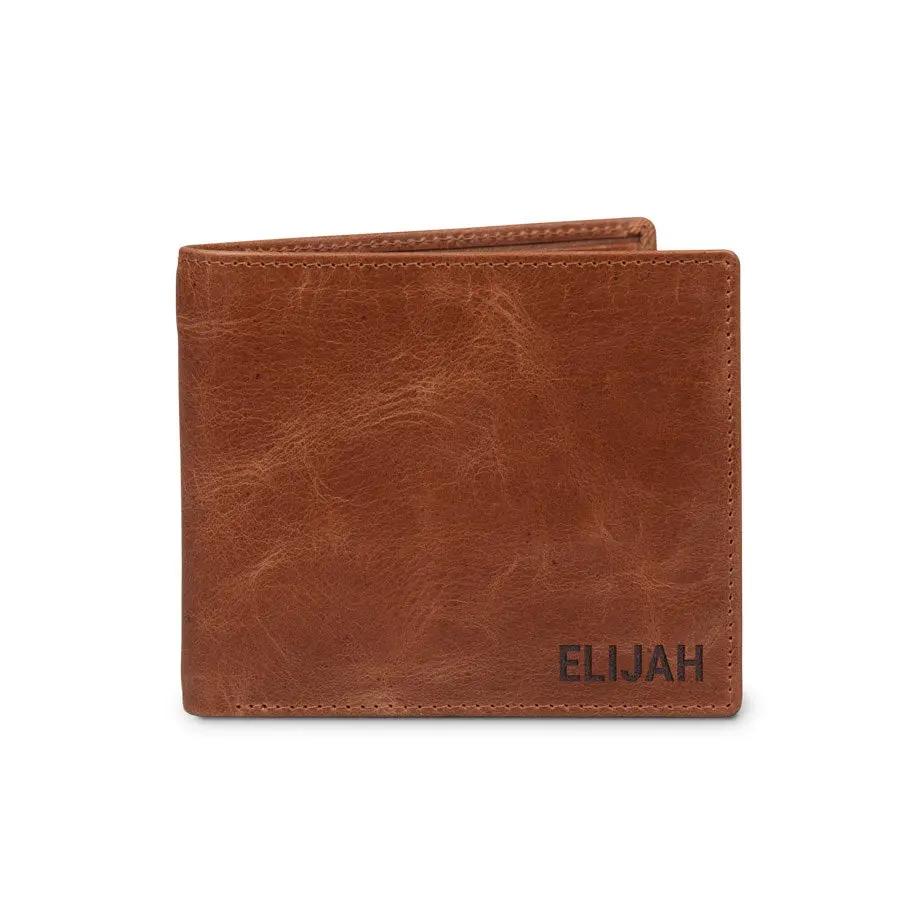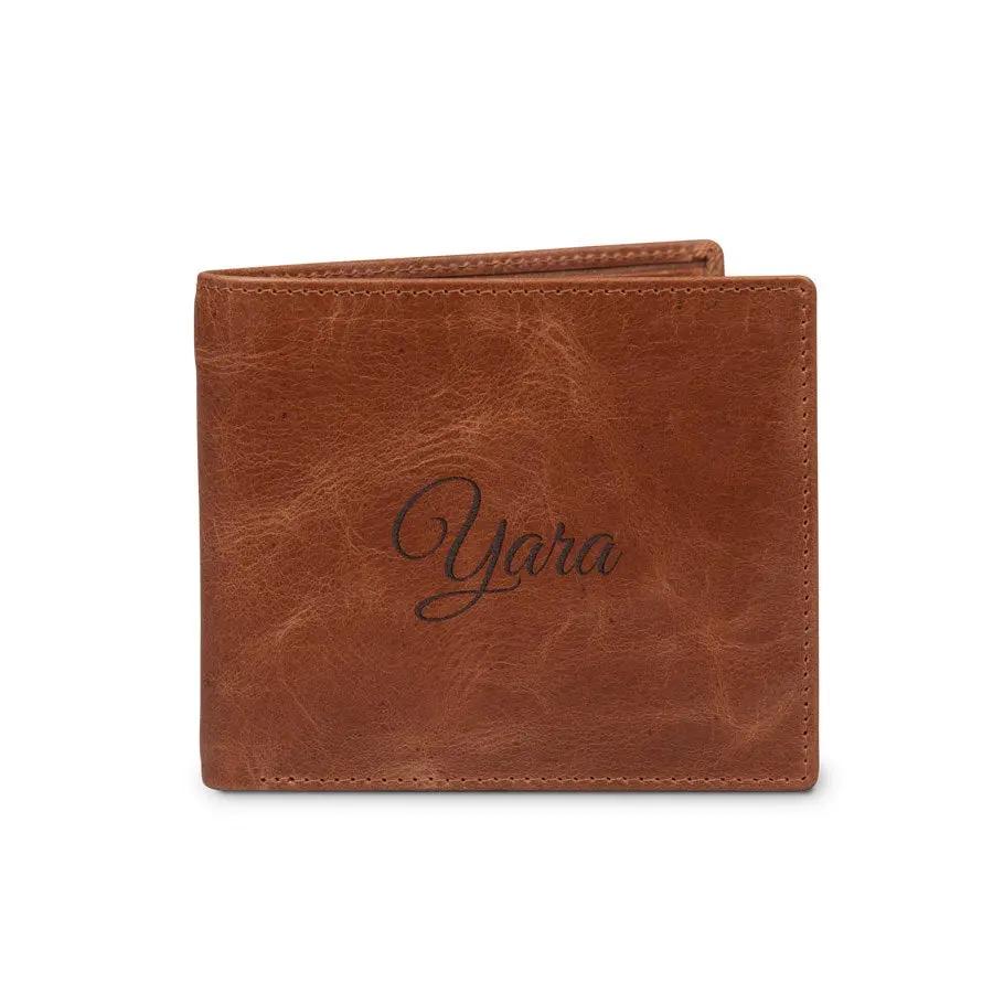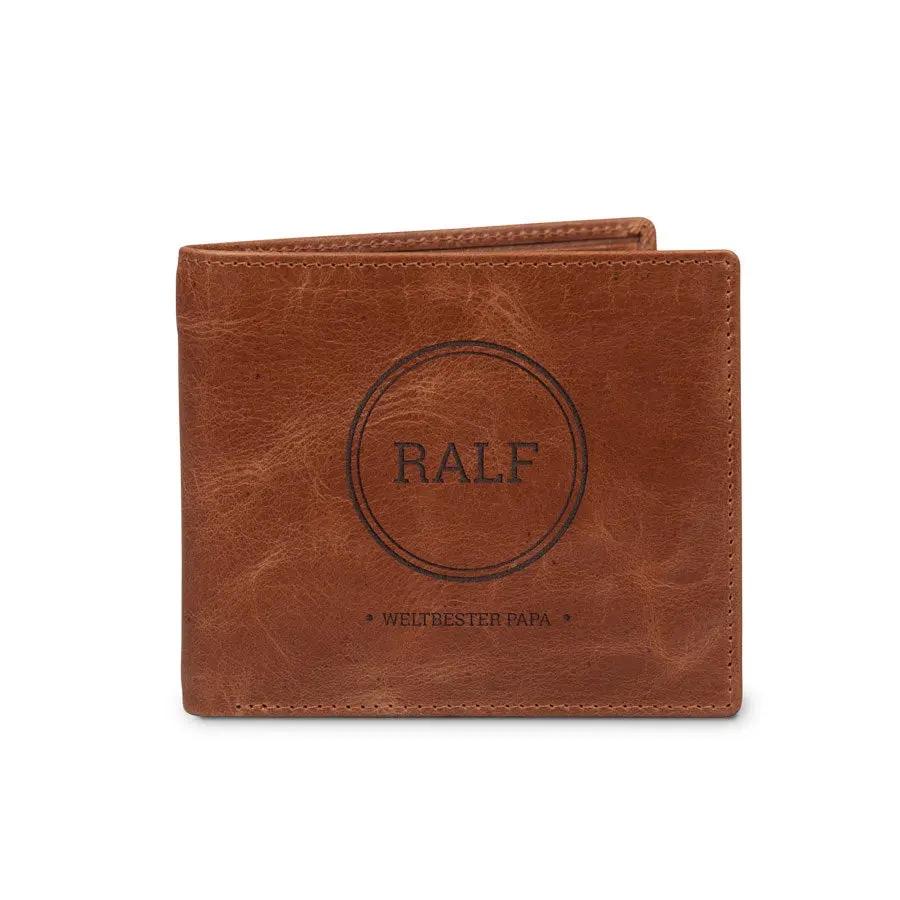 Una Cartera de cuero única con nombre y/o texto grabado. Hecho de cuero de búfalo de grano completo curtido en vegetales ¡El regalo más hermoso para todos!