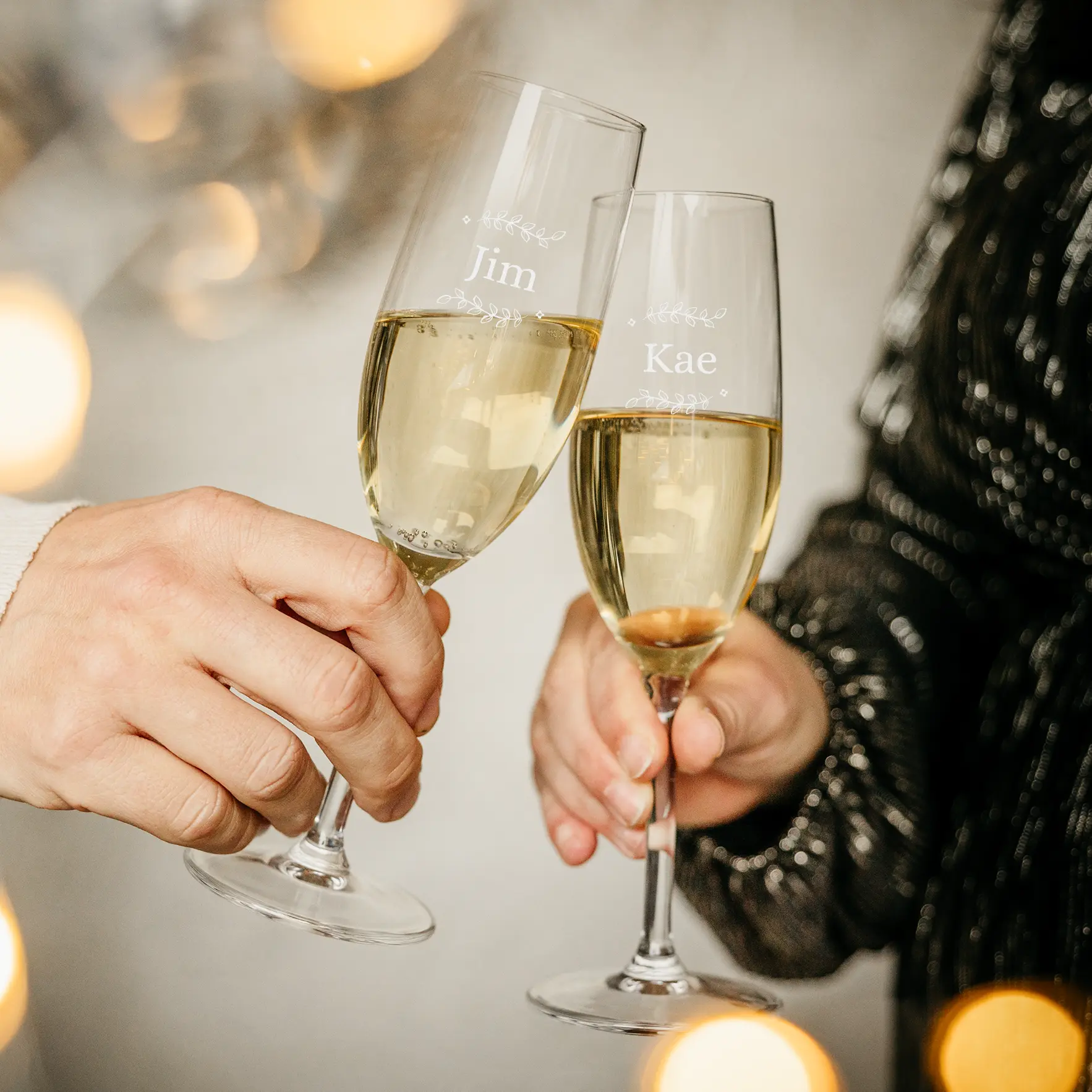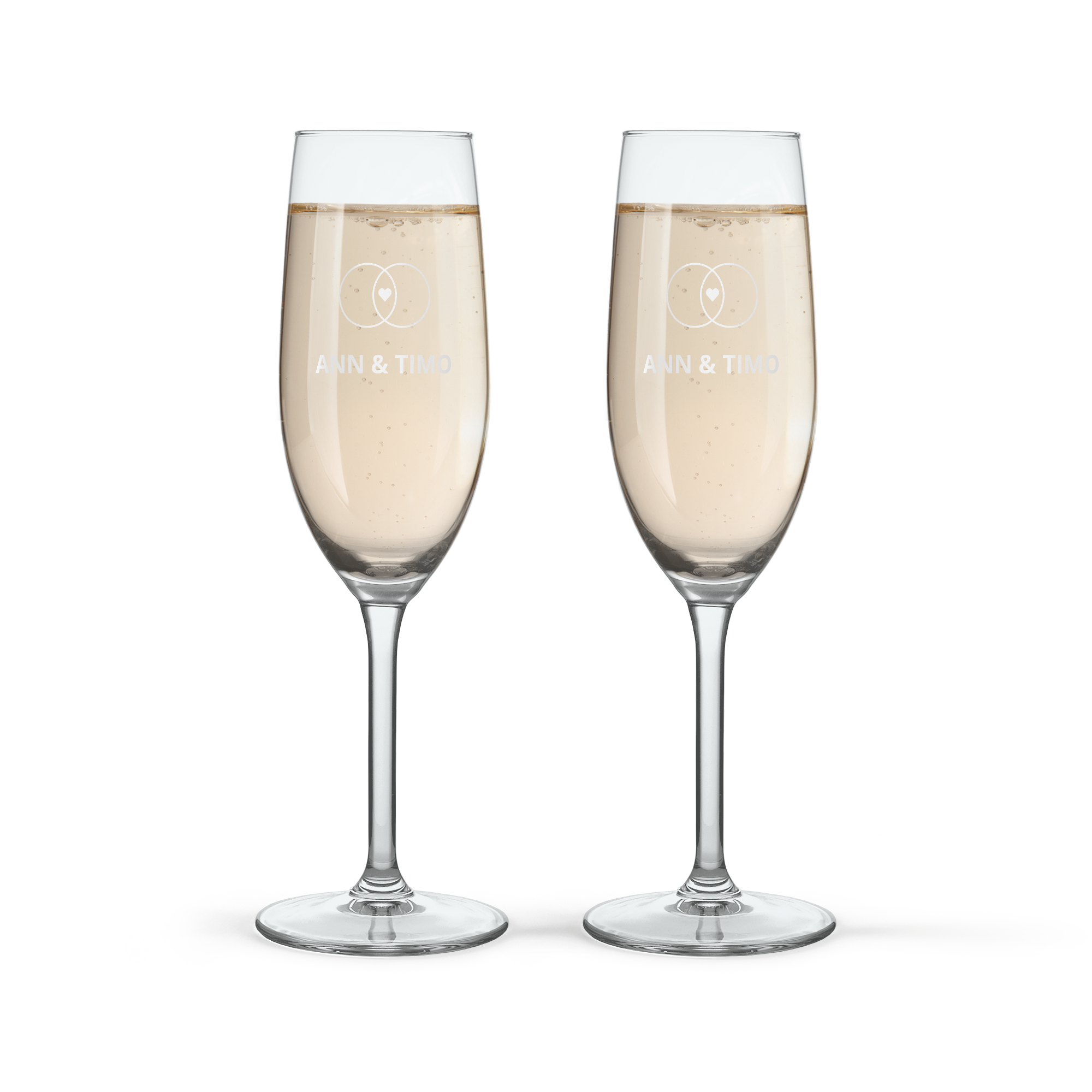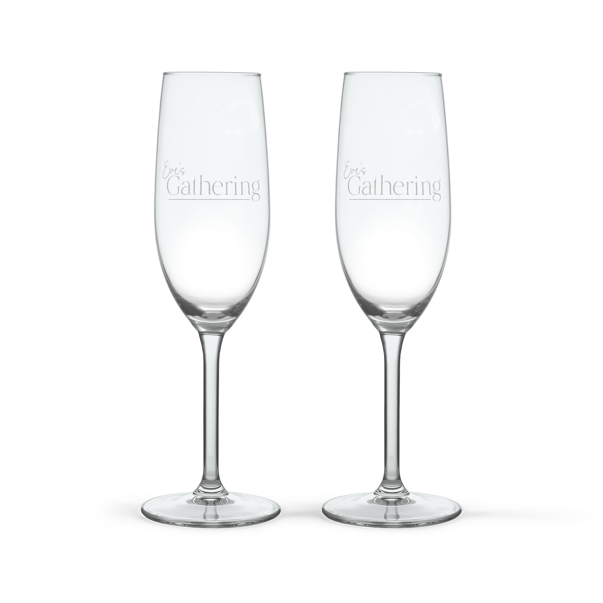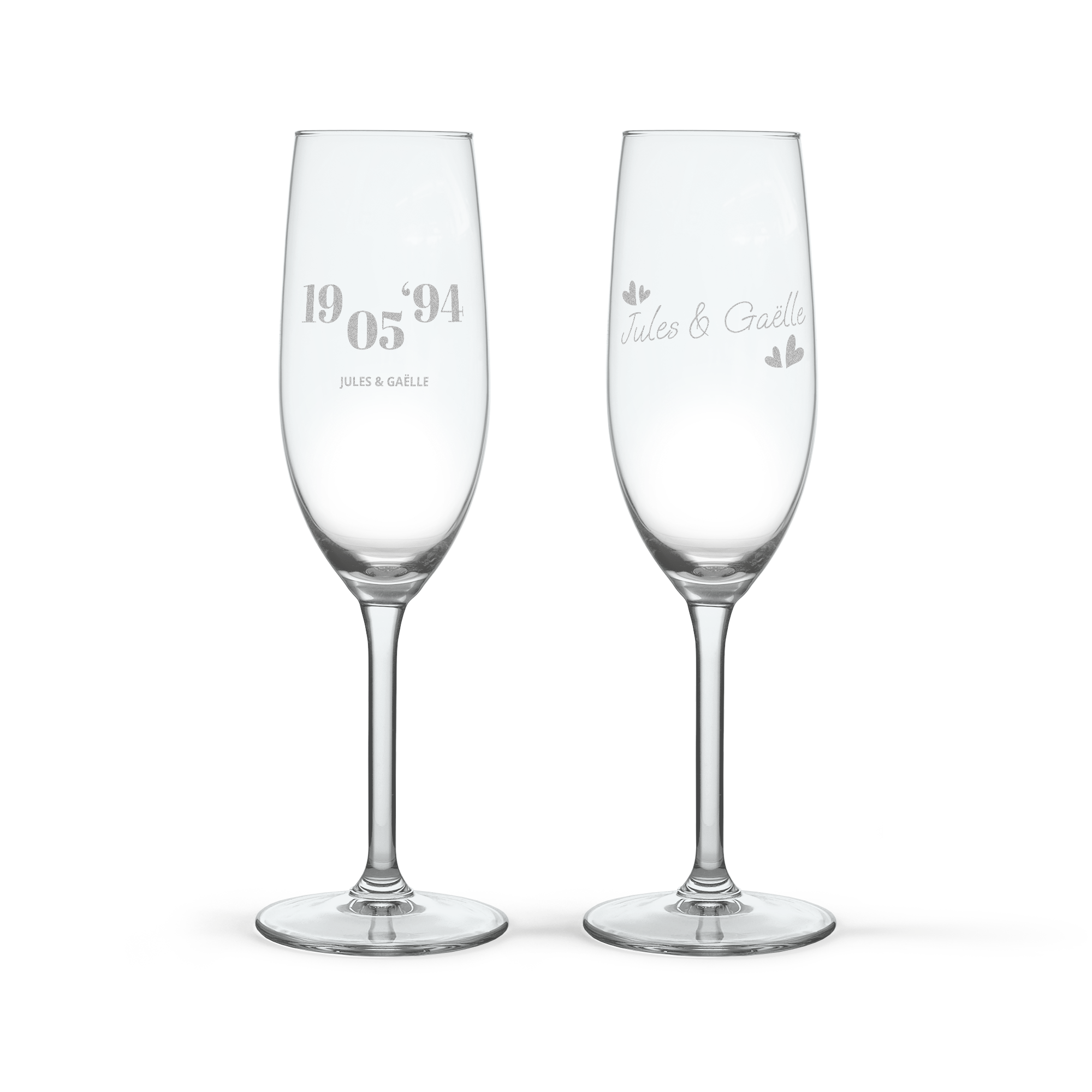 Hermosas copas de champán grabadas con texto o nombre. El regalo perfecto para celebrar cualquier ocasión.