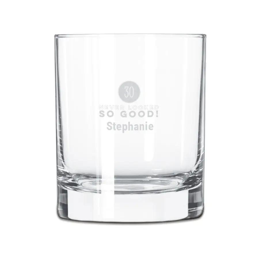 Consigue un vaso de whisky grabado con un nombre o texto. 8,5 cm de alto con un contenido de 20cl. Fabricado por la marca Libbey.