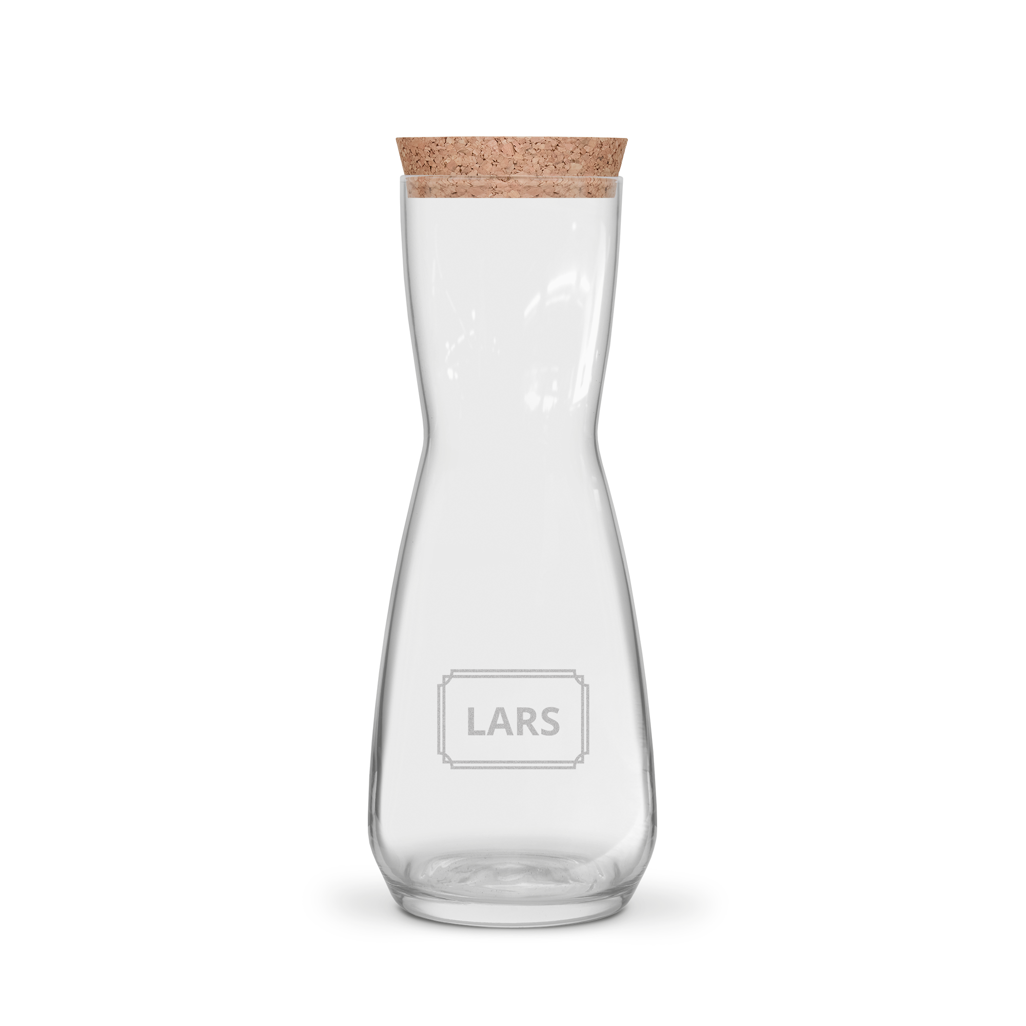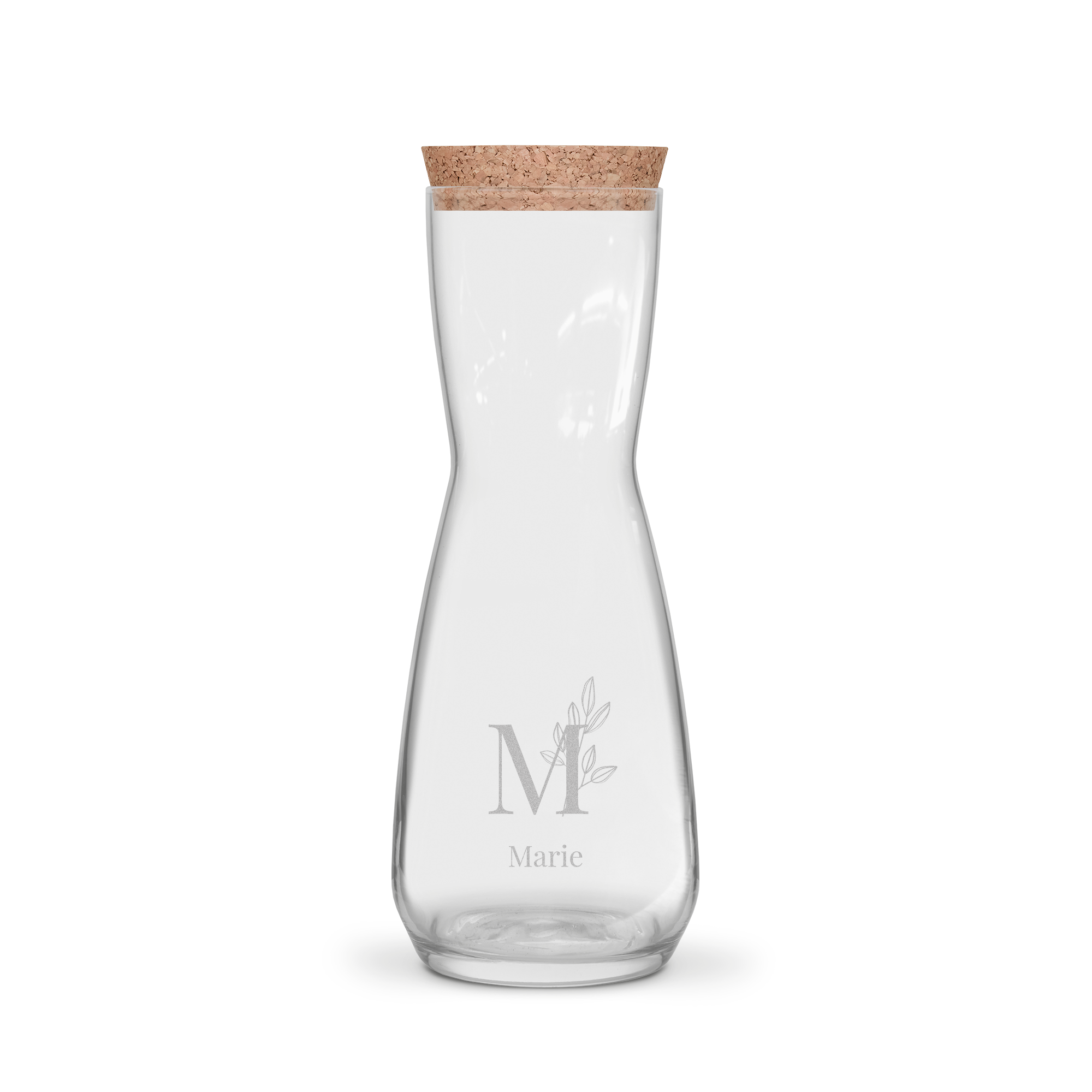 Más información sobre la botella de agua personalizada: Diámetro : 8,5 cm Altura : 26,5 cm Contenido: 1 LCierre: tapón de corcho Personalización : con nombre o texto Grabado: blanco, por lo que el resultado final puede ser un poco diferente del mostrado en la website.Información adicional: apto para el lavavajillas (sin la tapa)