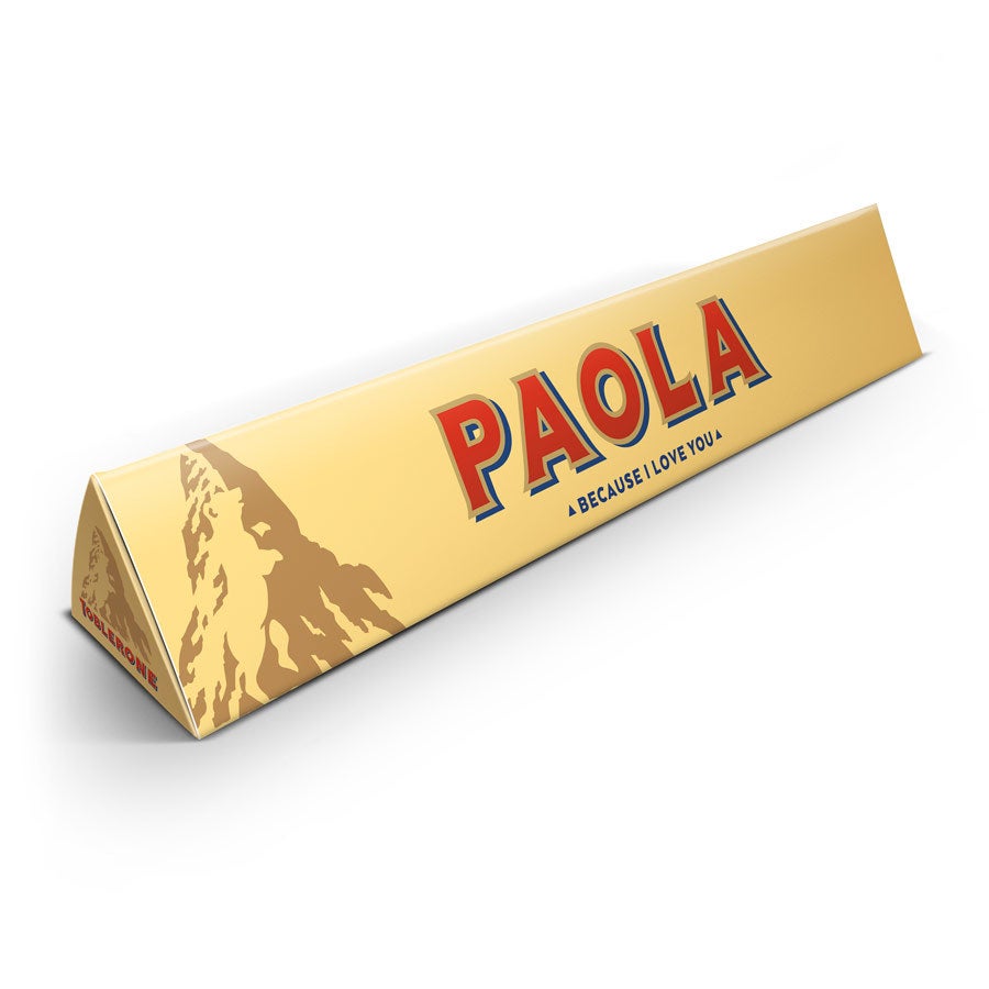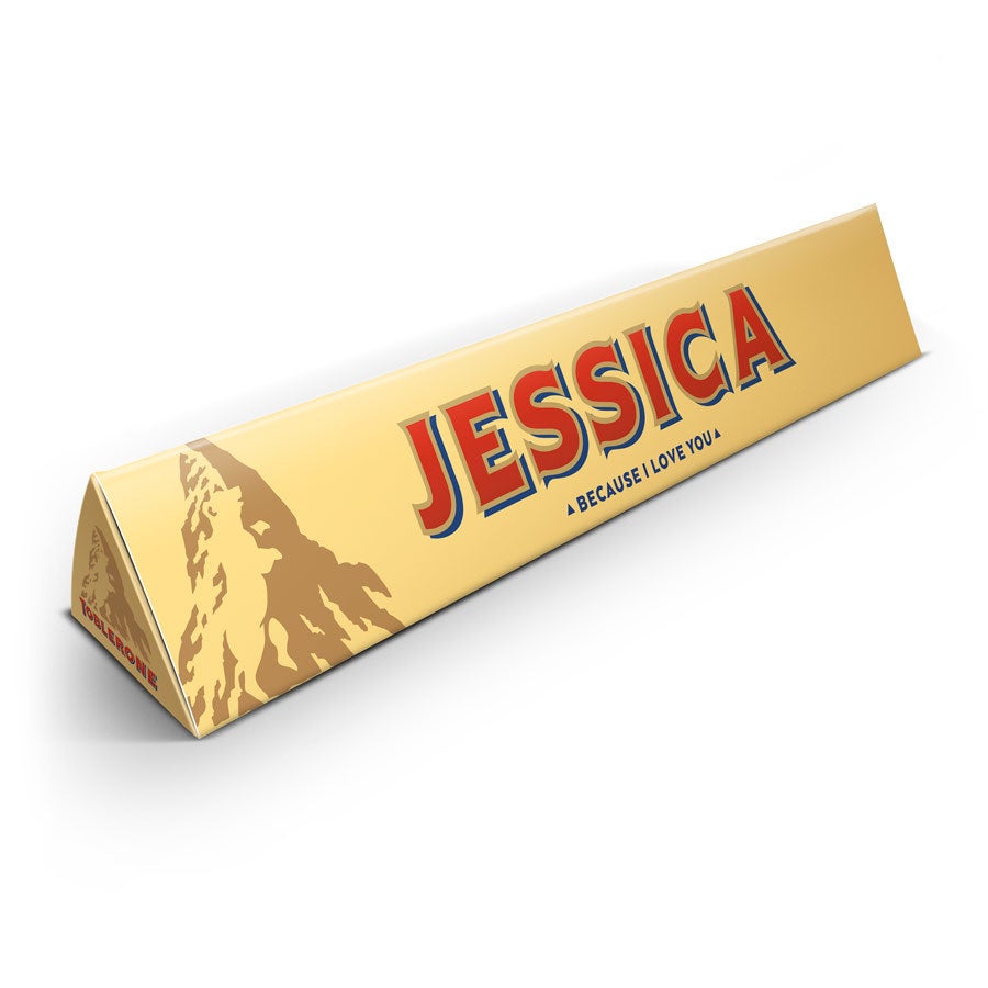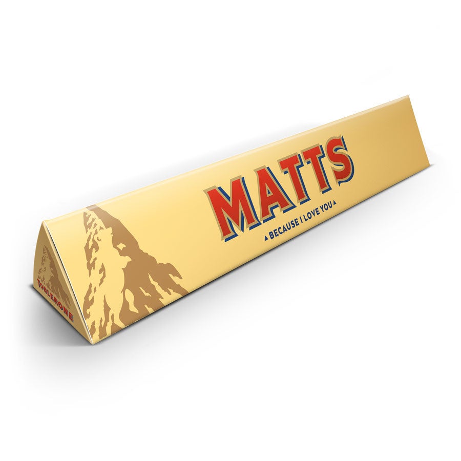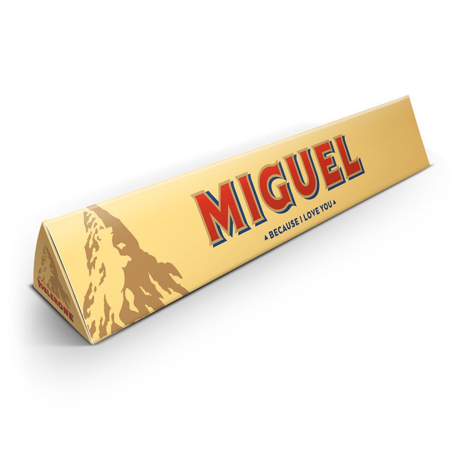 Sorprende con una barra personalizada de Toblerone. Diseño clásico de Toblerone con un toque personal.