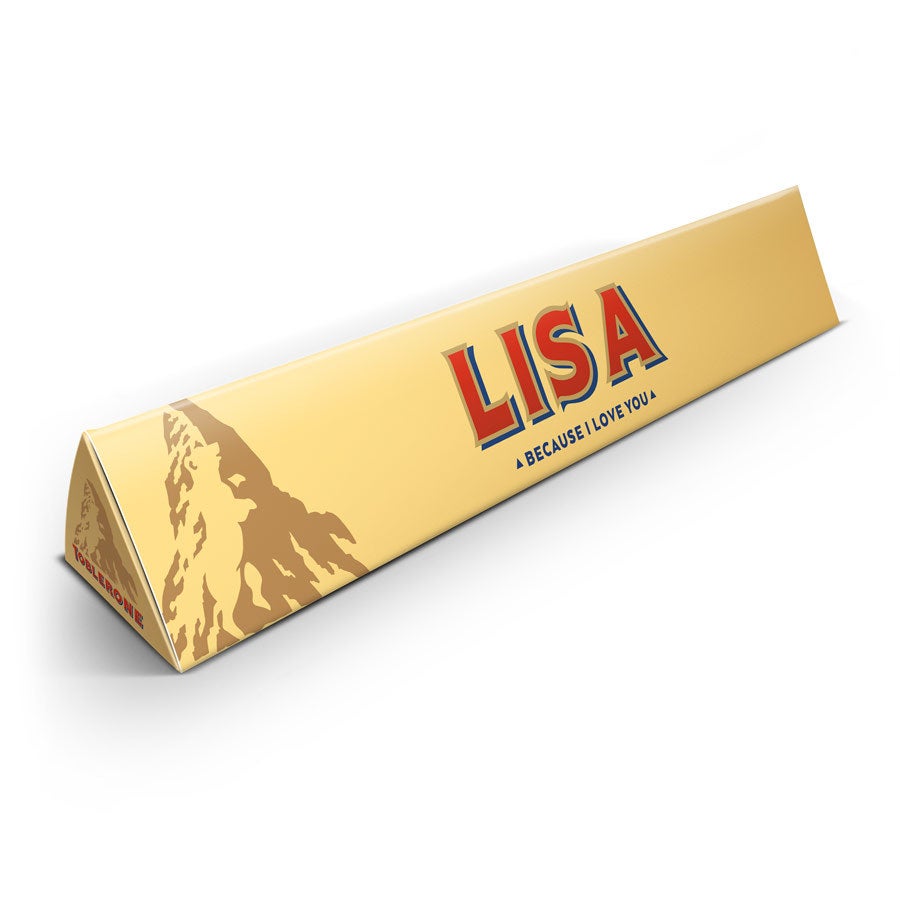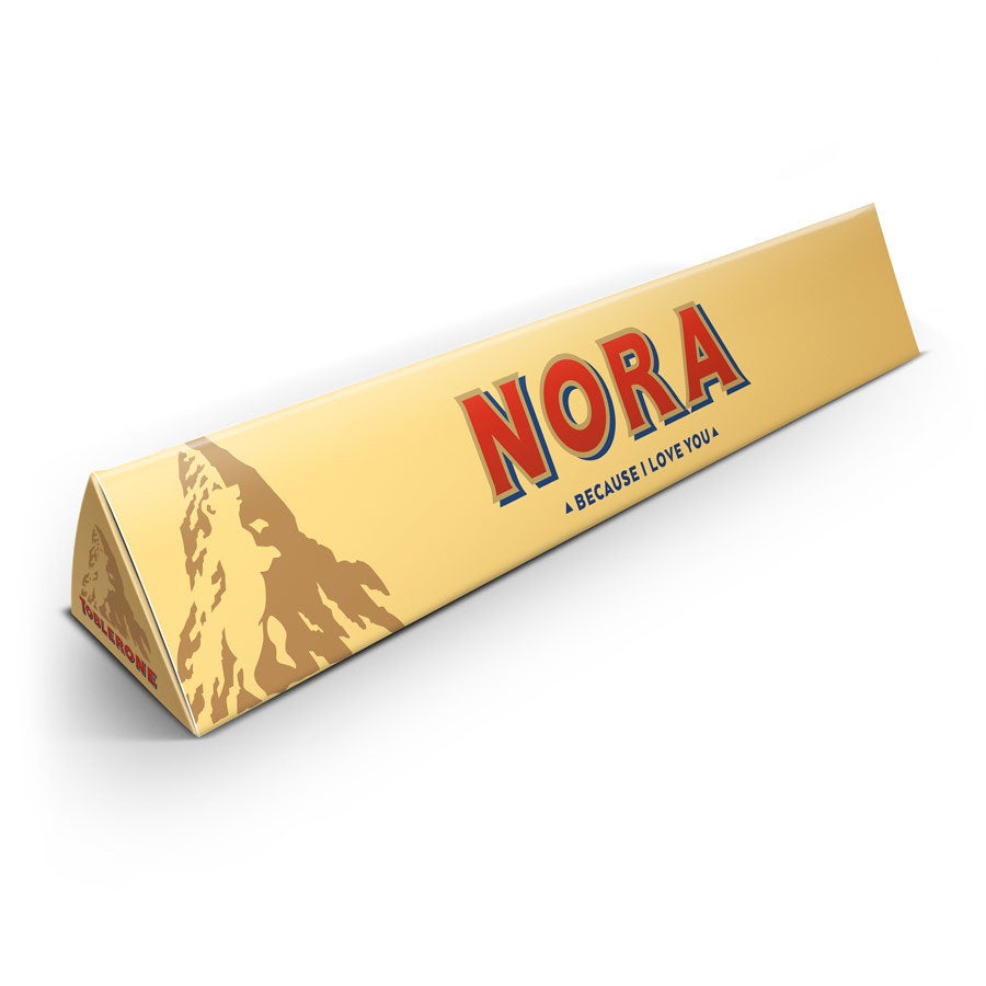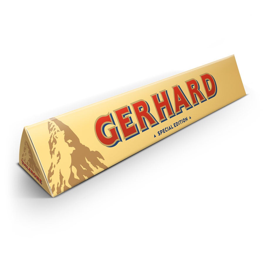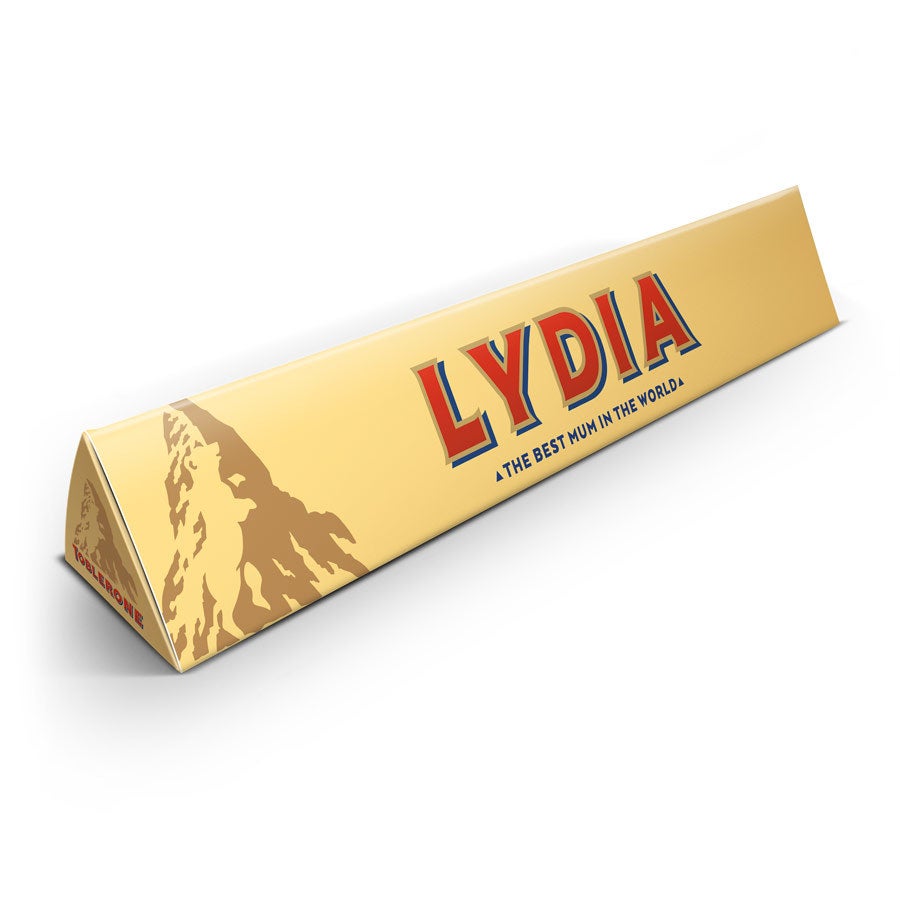 Sorprende con una barra personalizada de Toblerone. Diseño clásico de Toblerone con un toque personal.