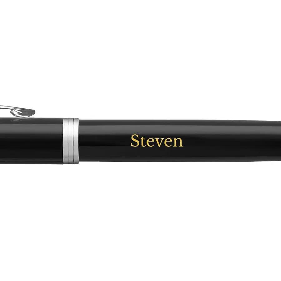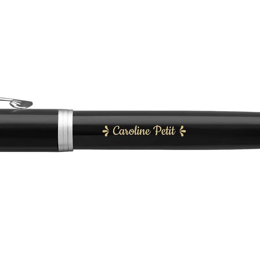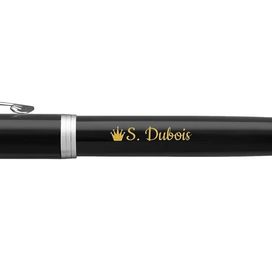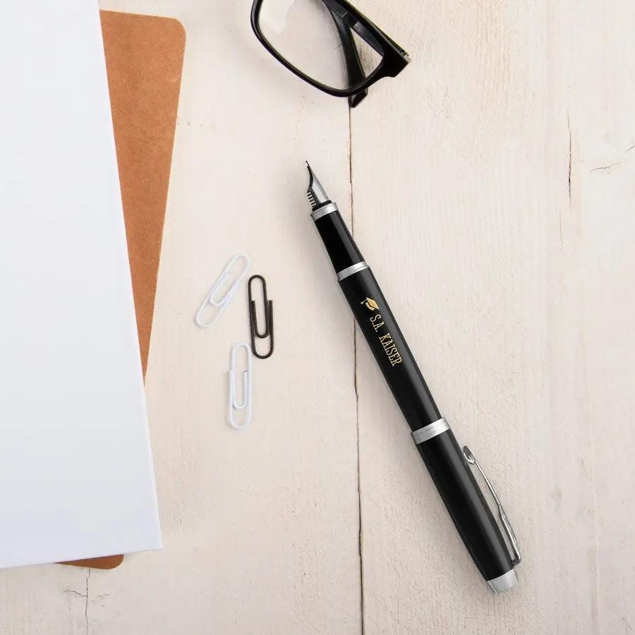 Pluma estilográfica Parker IM negra grabada, tinta azul, caja de regalo de lujo, recargable con cartuchos Parker.