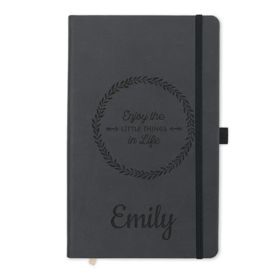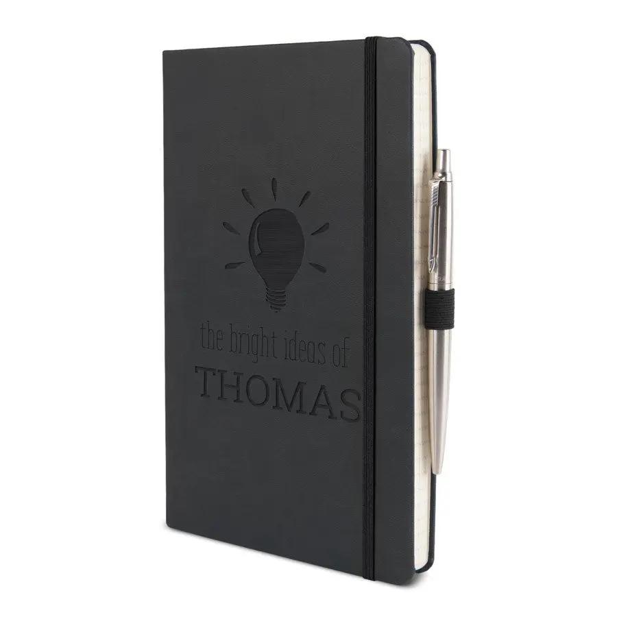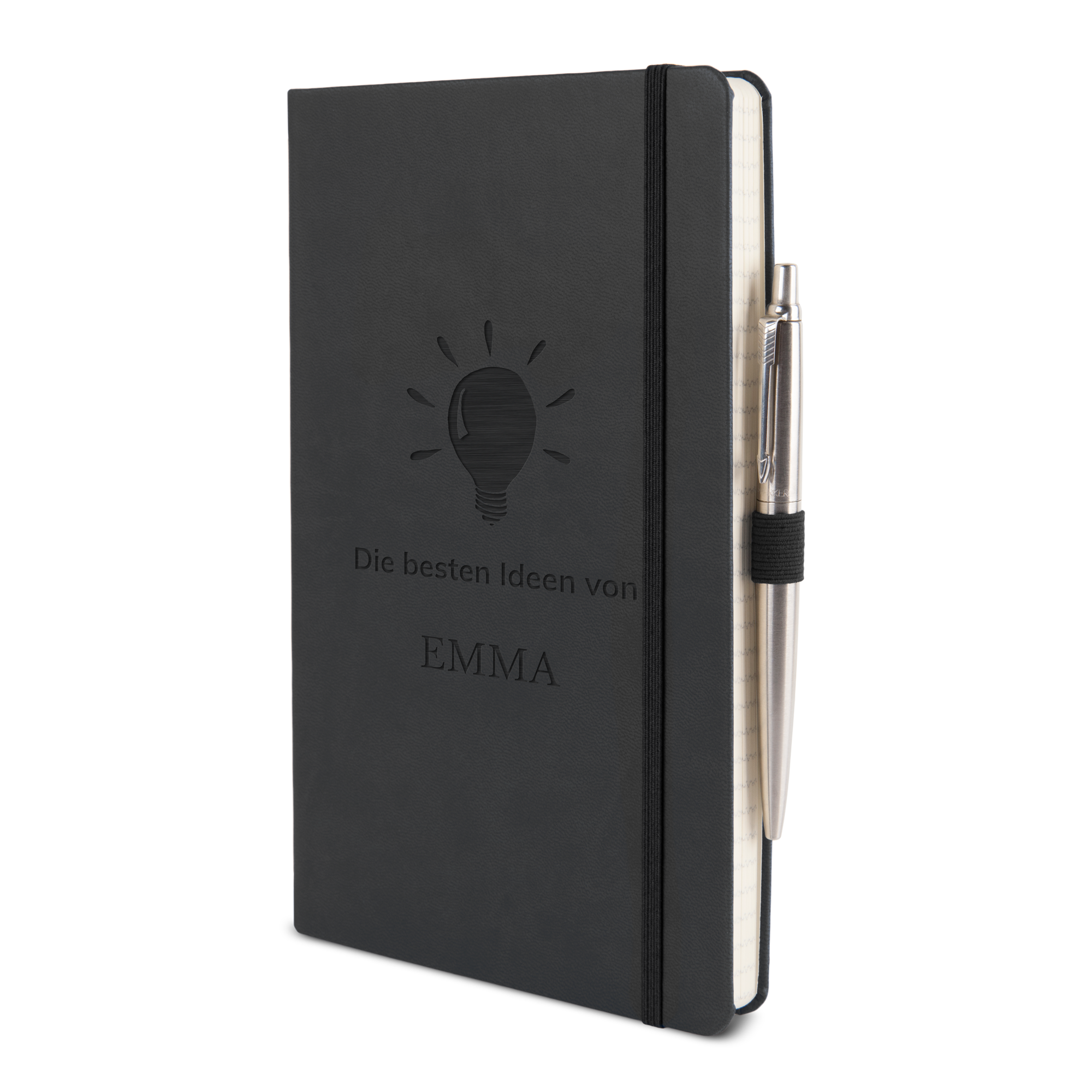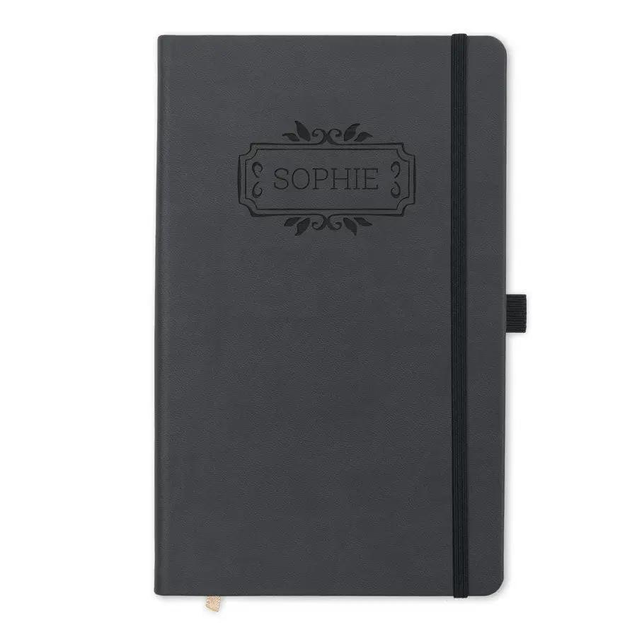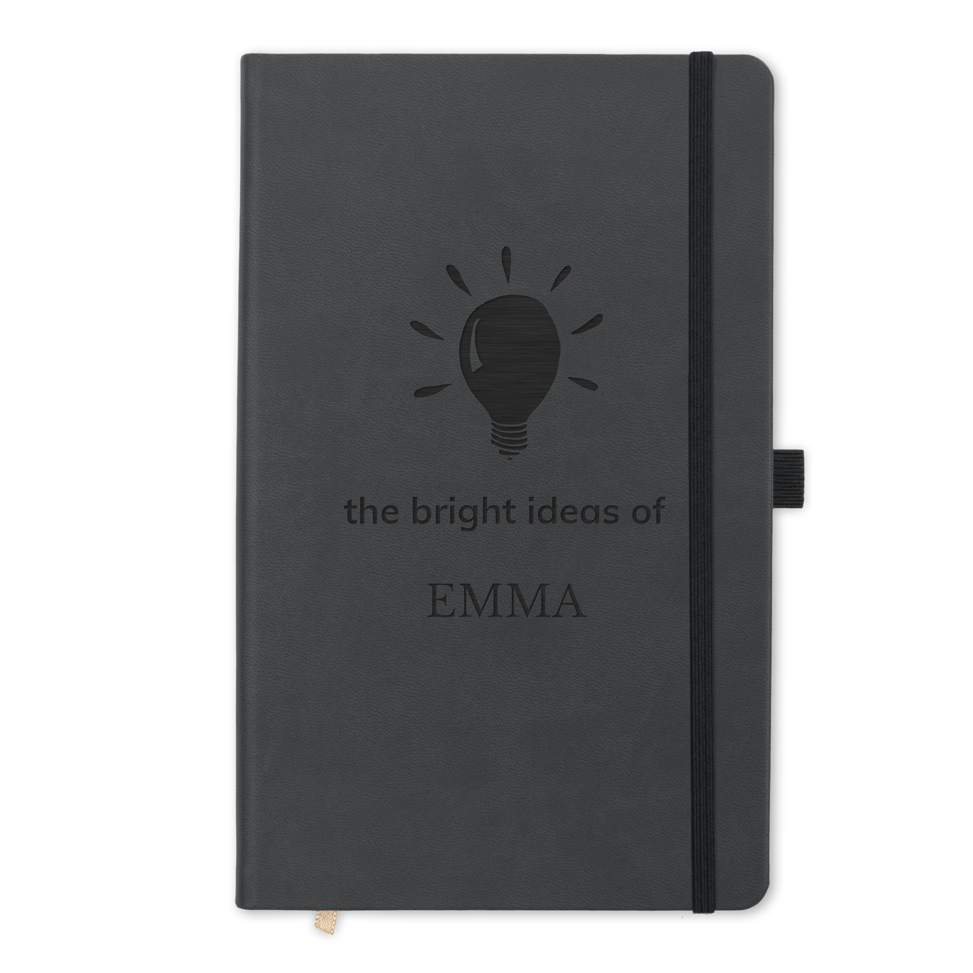Cuaderno súper original y personal grabado con tu nombre. ¡Con muchos diseños alegres! Disponible en negro y azul!