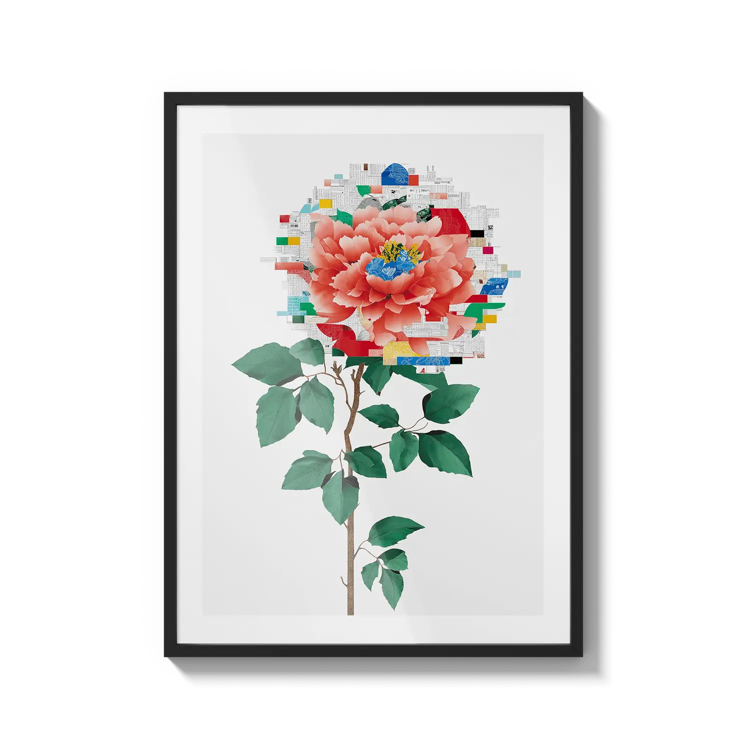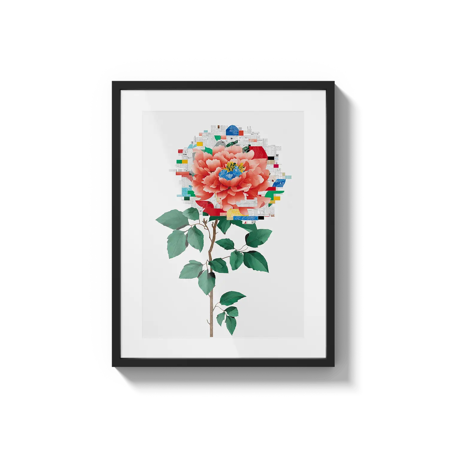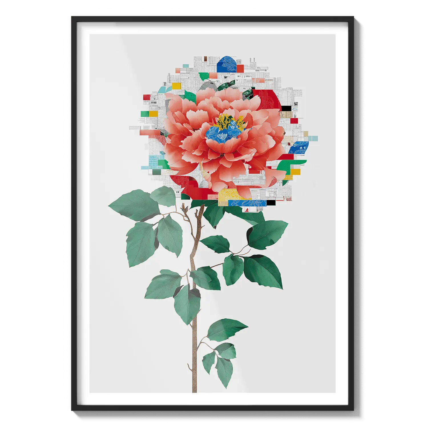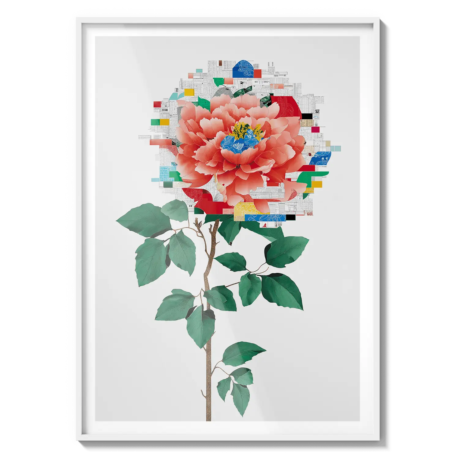 Un vívido collage floral que mezcla formas y colores en una animada composición moderna. Un gesto alegre para alguien que ama el arte atrevido.