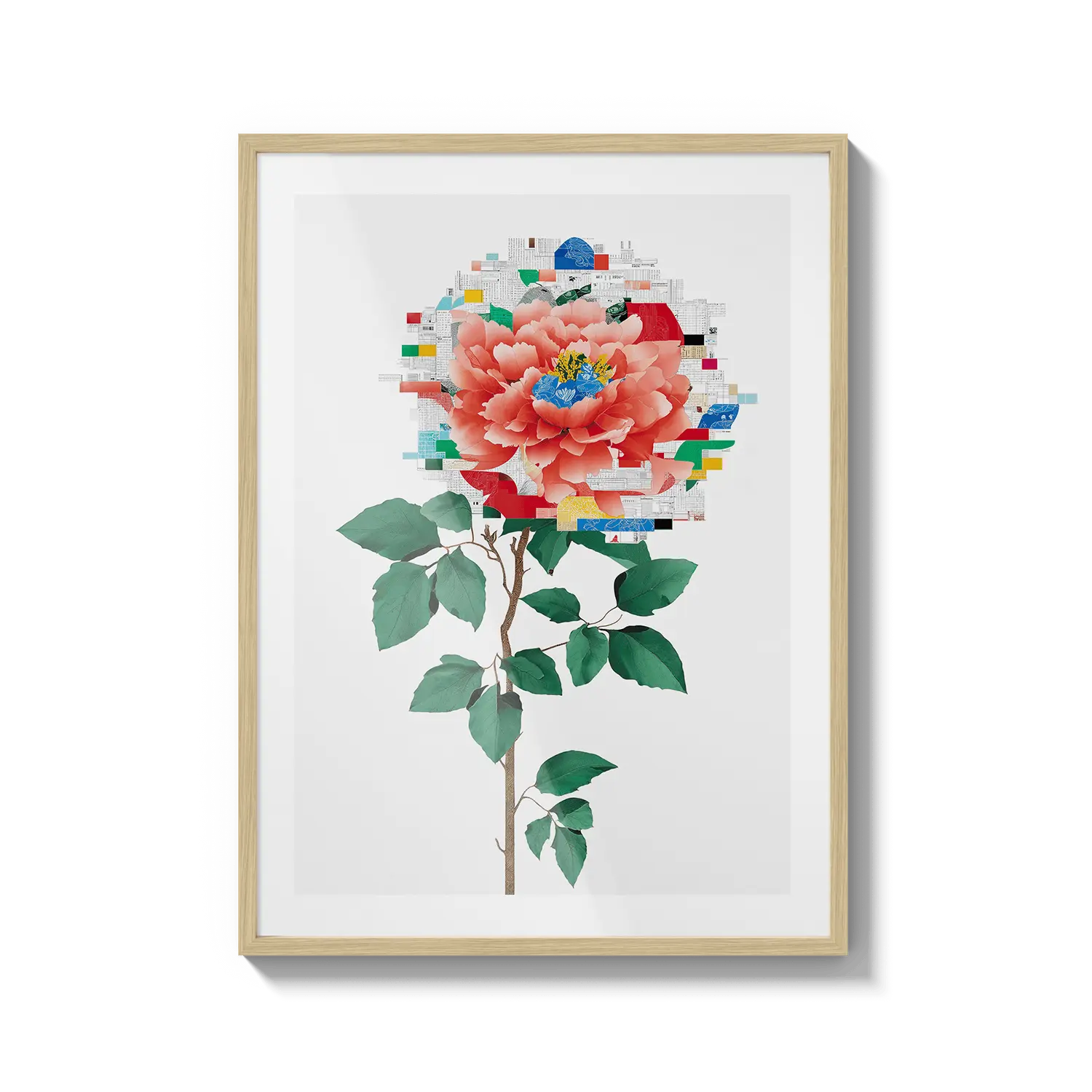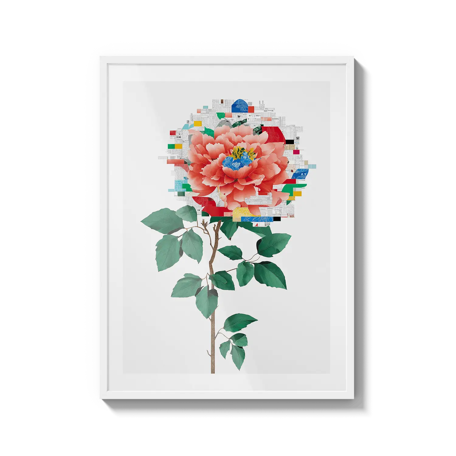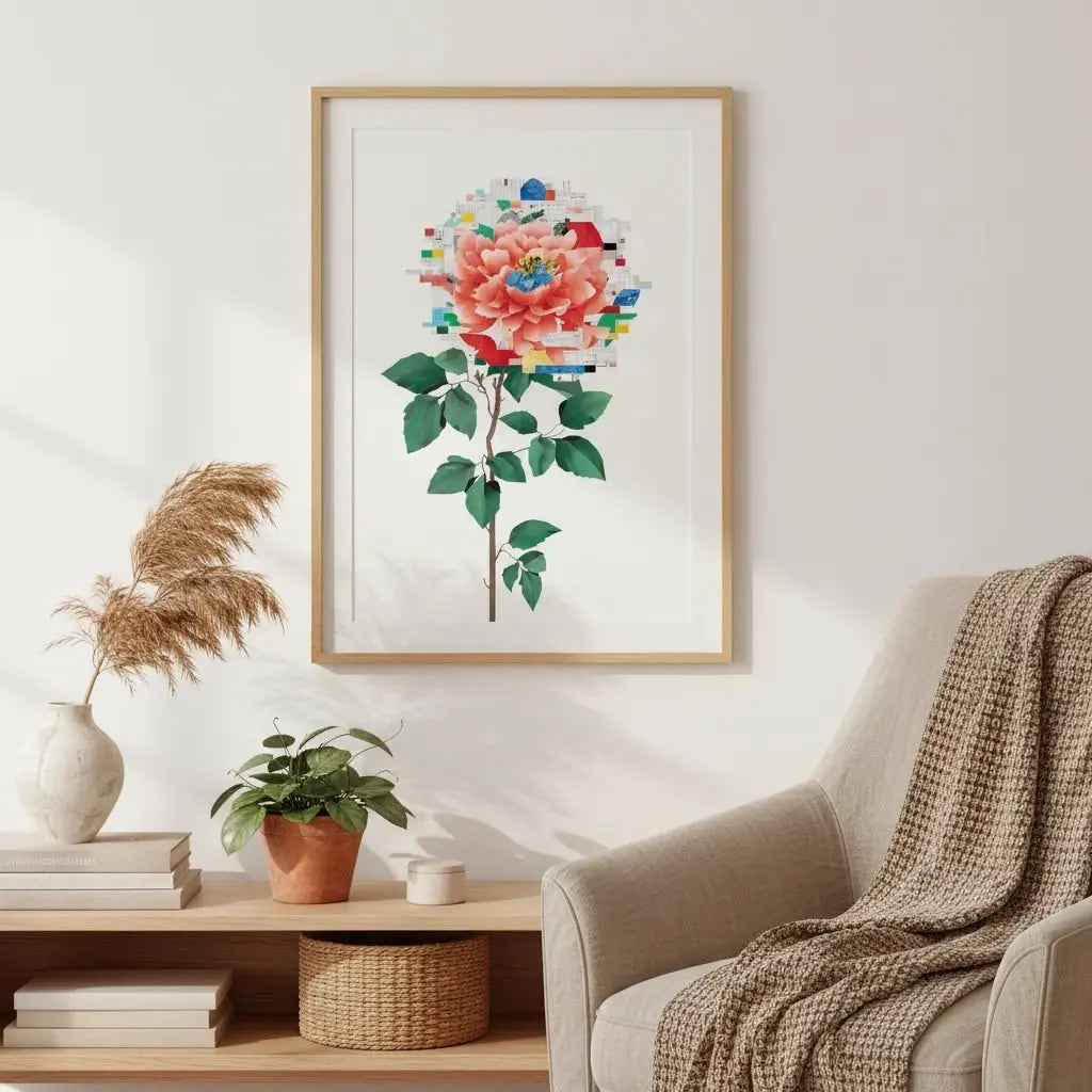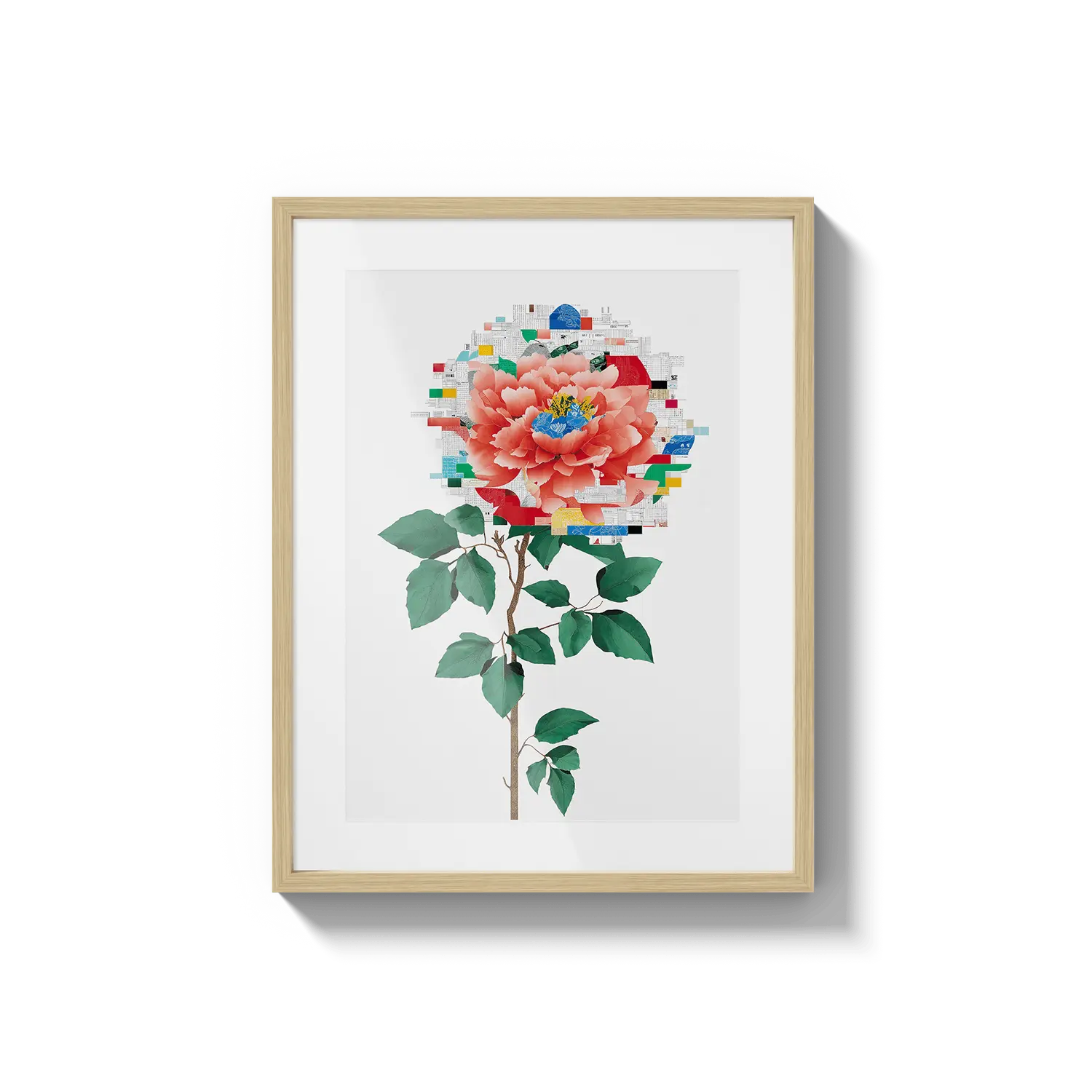 Un vívido collage floral que mezcla formas y colores en una animada composición moderna. Un gesto alegre para alguien que ama el arte atrevido.