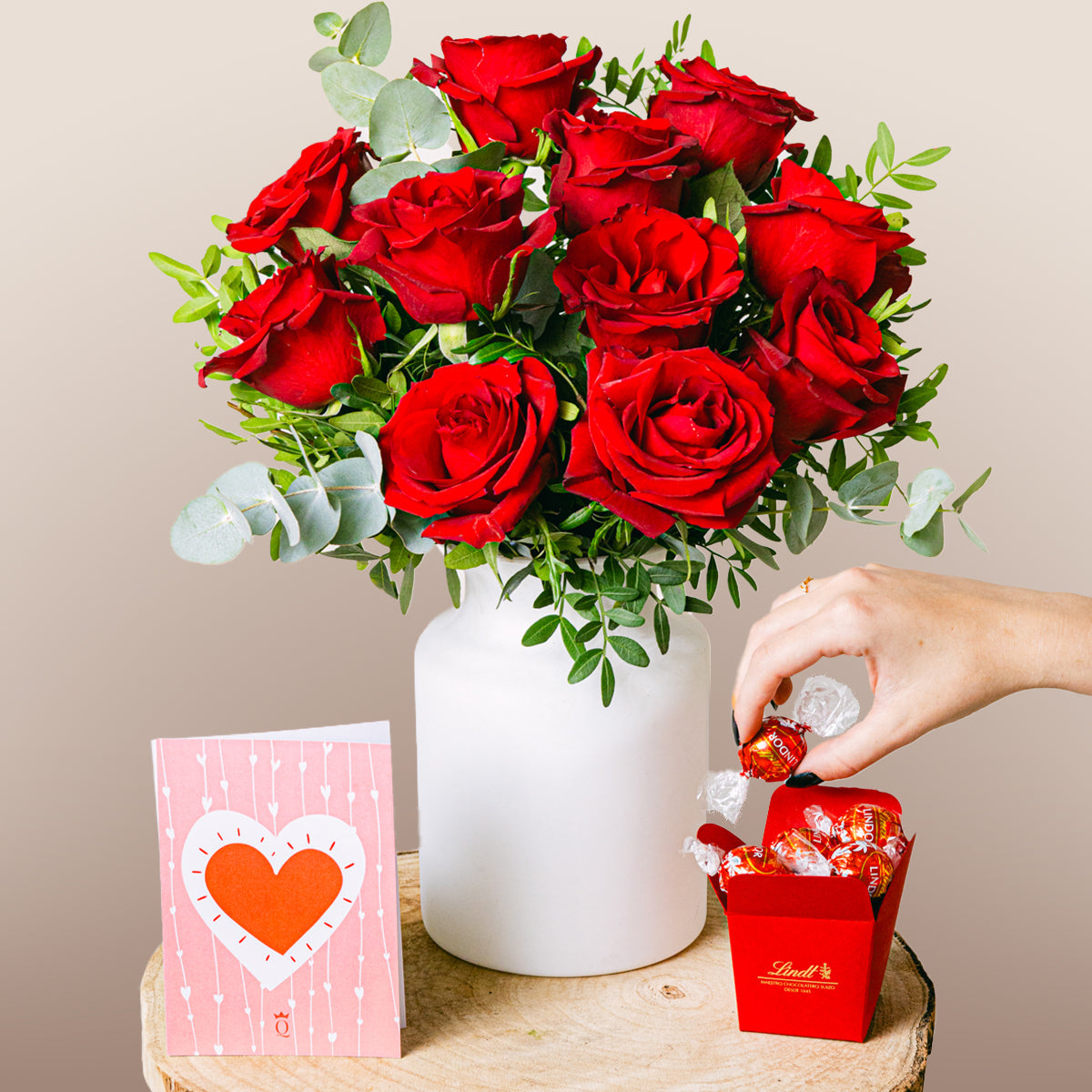 A bouquet of 12 red roses, a symbol of love and passion, perfect for expressing the deepest feelings. Each rose, with its intense and vibrant color, represents a unique and unforgettable gesture of affection. Ideal for celebrating special moments, this bouquet embodies elegance and romance in every petal. A gift that speaks the language of the heart.