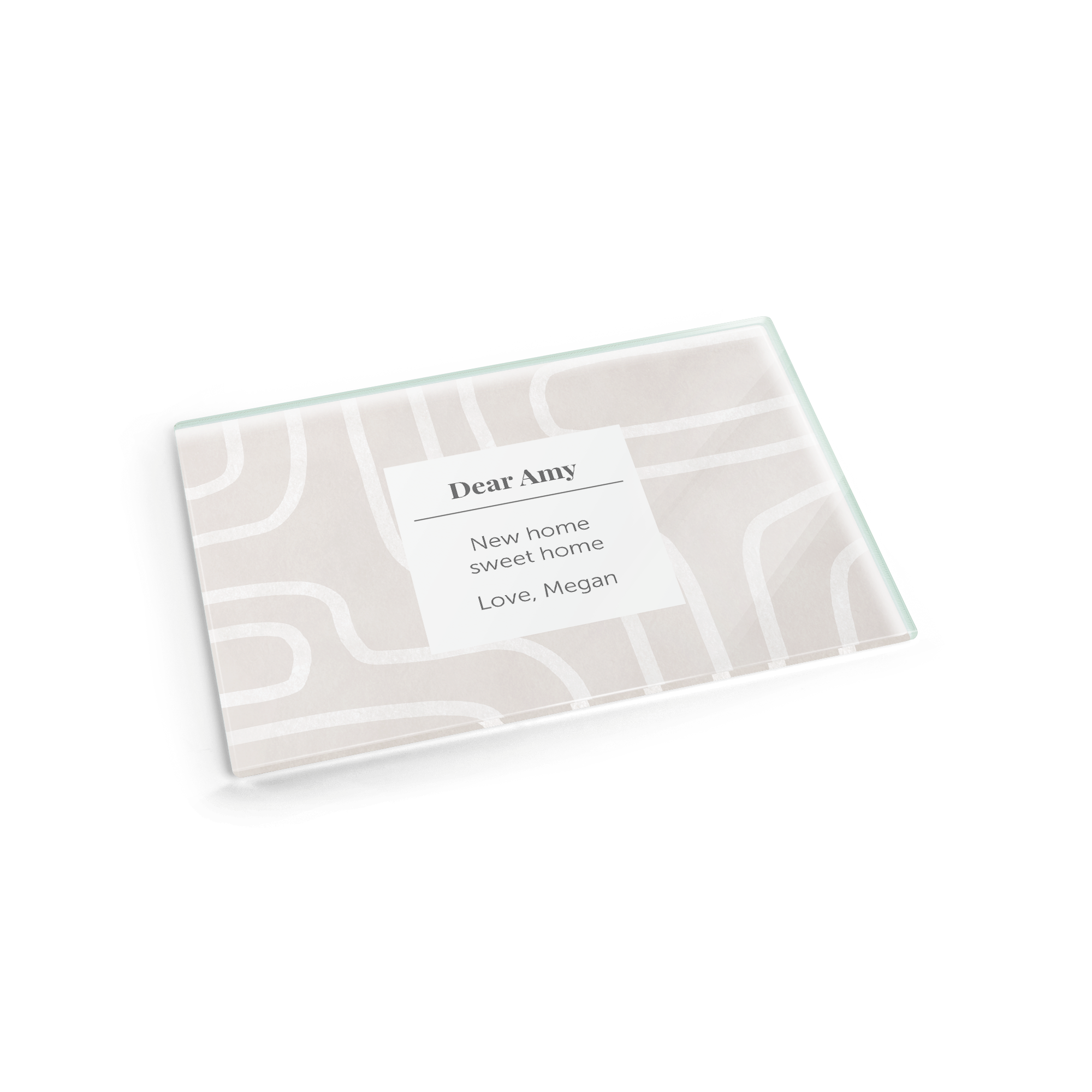 ¡Una hermosa tabla de cortar de vidrio grande con tu propia foto y texto!