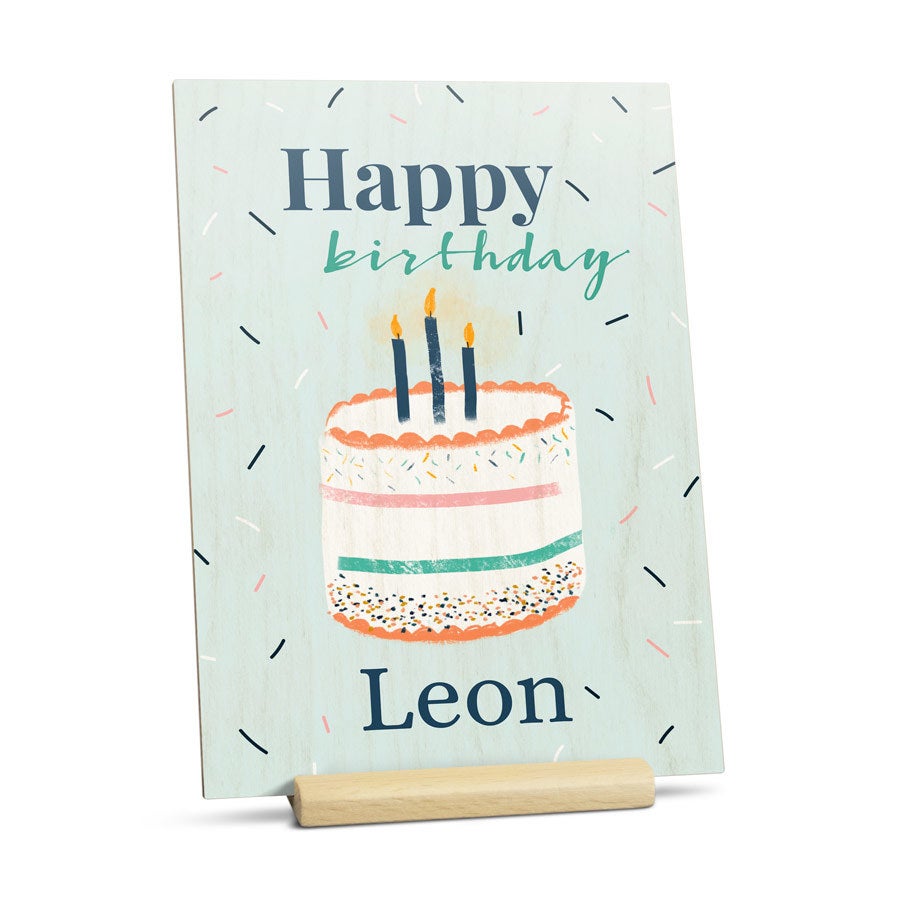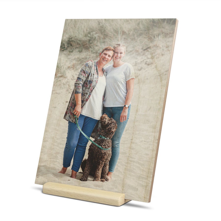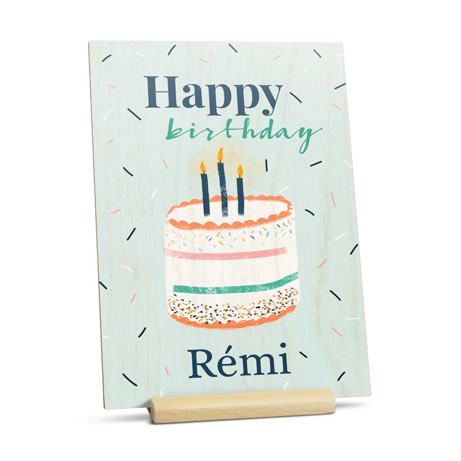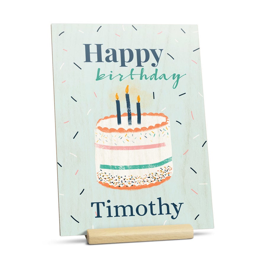 MMás información sobre la tarjeta de madera:Material: madera con acabado de lujoMedidas: 12 x 16,7 cm cmImpresión: nítida y a todo color Personalización: con nombre, foto y/o texto Extra: incluye soporte Información importante:La madera es un producto natural, por lo tanto la impresión puede tener relieves propios de la madera.